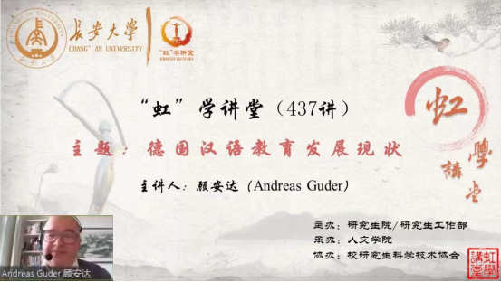 3月27日晚,我院邀请德语区汉语教学协会会长Andreas Guder(顾安达)教授作了题为“德国汉语教育发展现状”的报告,全校共计300余名师生通过线上参加,此次讲座由汉语国际教育学科召集人冀芳教授主持。