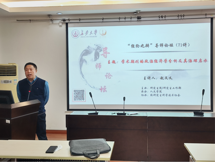 11月29日晚,我院邀请新闻传播专业硕士研究生导师赵文义教授作了题为“学术期刊的政治经济学分析及其治理启示”的报告,此次讲座为“经纶之辩”导师论坛第71讲。全院共100余名师生参加,本次讲座由新闻与传播专业学位点组长张娜副教授主持。