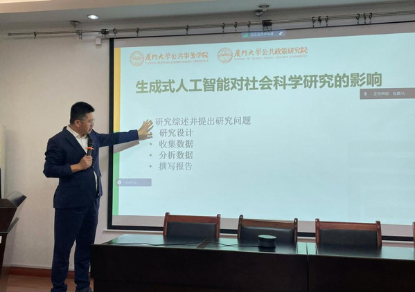 于文轩教授首先从社会科学研究的范式出发讲述了开展研究的流程和逻辑,然后以ChatGPT为例梳理了人工智能的开发过程、运行逻辑和应用潜力,从研究设计和数据分析等方面重点解读了人工智能在研究当中的运用方法,并通过大量案例进行了演示。接着,于文轩教授阐述了人工智能对于社会研究形成的挑战和冲击,它使研究的展开从理论和数据驱动不断转向了AI驱动,从研究的解释导向发展为问题的解决导向。最后,于文轩教授对于人工智能在社会科学研究中的运用进行了展望,强调超级人工智能即将来临,这对于公共管理的教学与研究提出了新的命题。