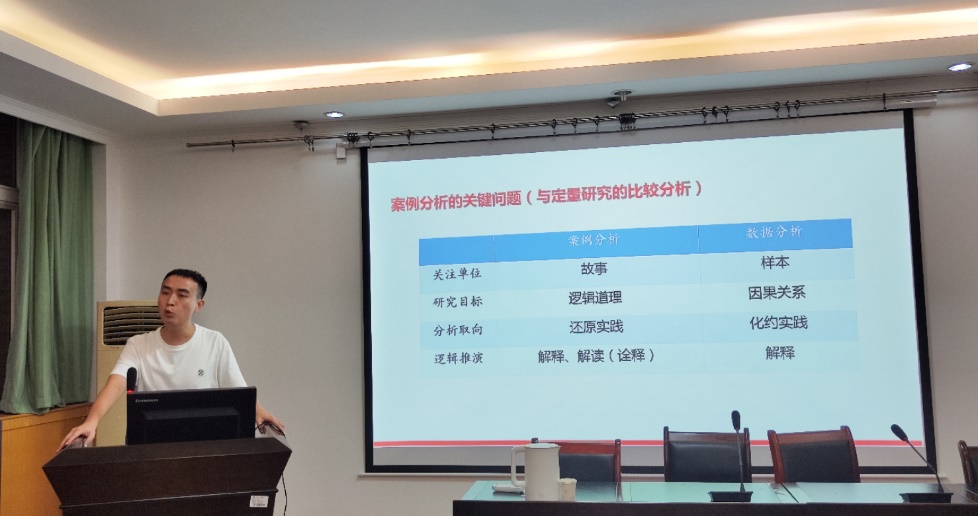 其次,包涵川按照“提出问题——分析问题——解决问题”的思路给同学们详细介绍了案例论文结构的构建,以自身论文《迈向“治理有机体”:中国基层治理中的情感因素研究》为例,分别从引言写作、文献综述写作、理论基础写作、案例叙事写作、理论探讨写作和总结思考写作六方面展开论述,展示了在案例论文写作中思路和方法的重要性,并谈到在论文写作中要切实提高理论水平。