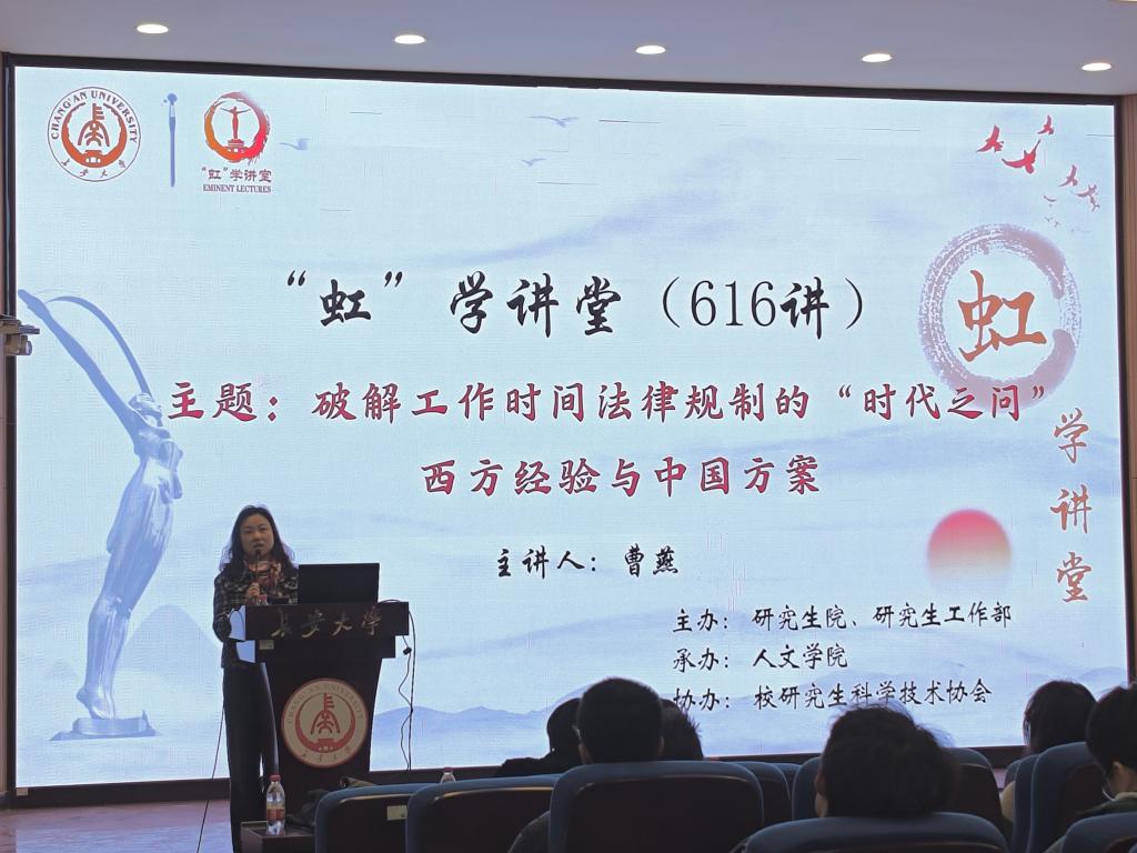 2025年3月18日,taptap188平台邀请西北政法大学曹燕教授于南校区东院伯声报告厅作题为“破解工作时间法律规制的‘时代之问’—西方经验与中国方案”的学术讲座,讲座由法学学科组长陈蓉教授主持。