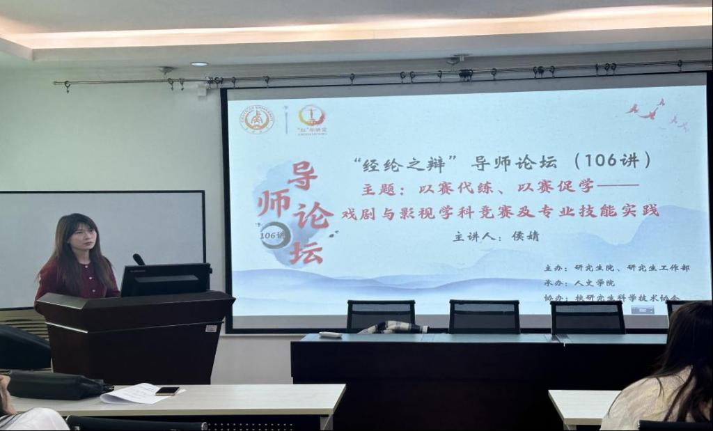11月27日下午,我院邀请戏剧与影视专业硕士生导师侯婧副教授作了题为“以赛代练、以赛促学——戏剧与影视学科竞赛及专业技能实践”的报告,此次讲座为“经纶之辩”导师论坛第106讲。本次讲座由戏剧与影视专业学位点组长张燕梅副教授主持。