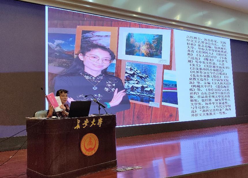 接着,吕红具体讲解了在异域文化中的文学创作。她从创作题材、叙事策略以及跨文化写作的特别意蕴展开论述,讲述了华人移民作家如何将跨时空的人生阅历、个性化的语言文学功底与异乡生活催生的新的灵感相融合,表现出东西方文化的差异和精神碰撞。海外作家虚构与非虚构的创作特色在海内外文坛产生了广泛而深远的影响。