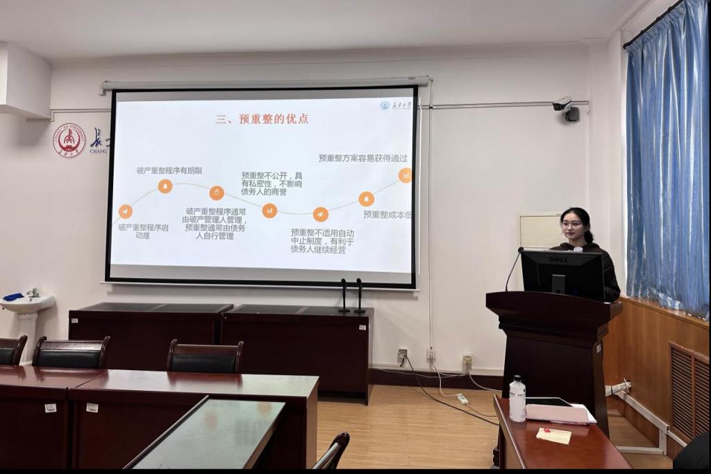 郭倩秀围绕“破产预重整”展开讲解:她首先对我国破产预重整制度的法律基础进行了梳理,并探索了我国预重整制度的现实困境,包括主体定位不清晰、配套机制不完善等。郭倩秀通过参考国外成熟经验并结合我国国情,提出了以下切实有效的应对方法,即确立预重整制度、明确法院角色定位、适用“特殊保护期间”以临时性保护债务人企业与规范与正式重整程序的衔接,以期完善我国破产预重整制度。