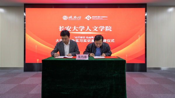 4月4日下午,“校企联合 协同育人”大学生校外实习实训基地揭牌仪式在当代陕西融媒体中心报告厅成功举行。陕西九所高校、陕西网及秦创原(国际)路演中心相关负责领导出席揭牌仪式并座谈交流。院党委书记杜智民,副院长杜波和新闻传播系主任崔慎之应邀出席。