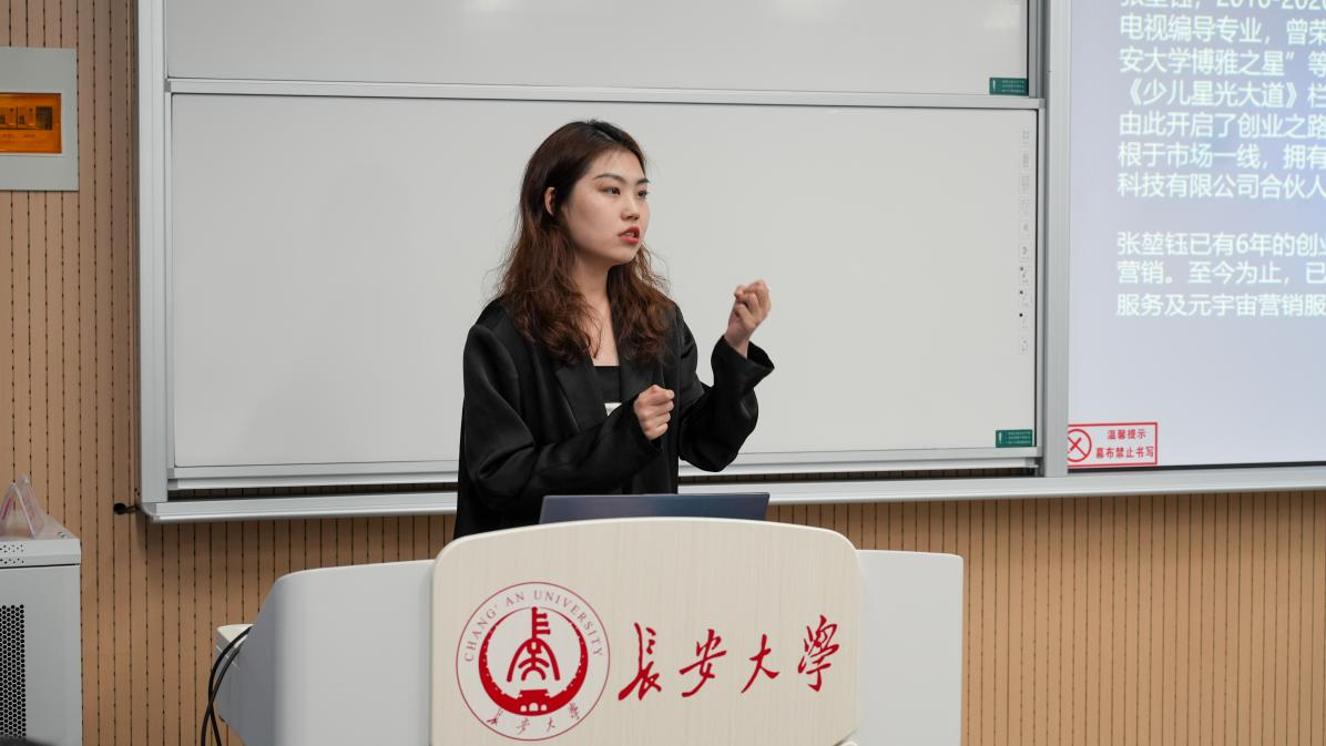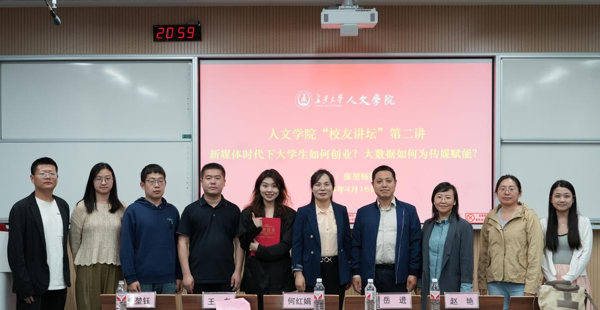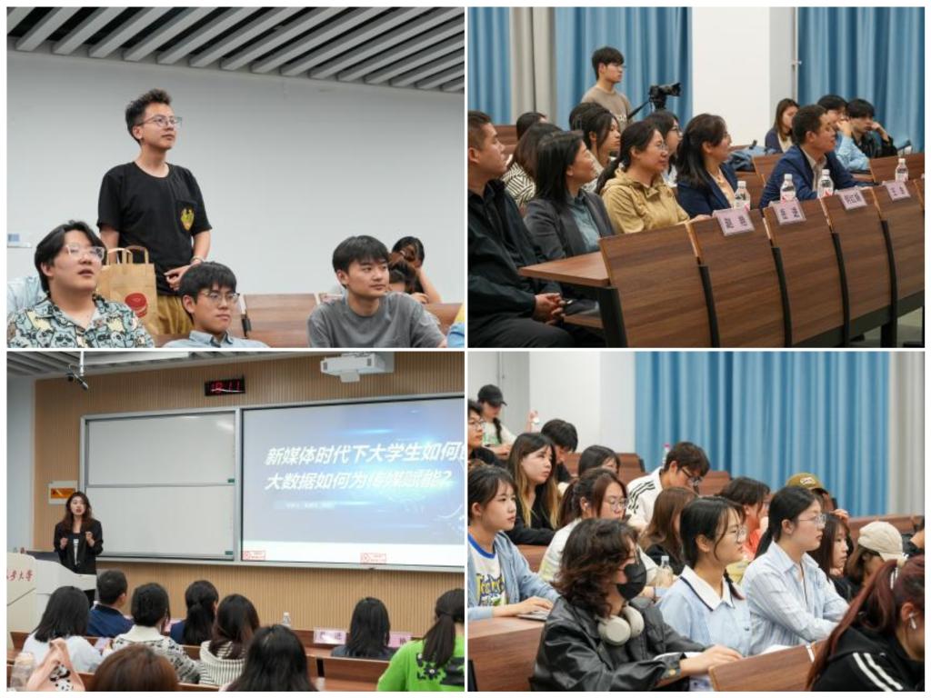 主讲嘉宾张堃钰校友,对学校、学院多年的培养表示由衷感谢。她表示在自己的创业征程上,老师们在校期间的教诲带给她不断前进的自信与底气,磨砺自我,坚毅前行。她从自身的创业经历出发,详细讲解了创业内涵、动力机制、实践过程、必备要素等;分享了具有可行性的创业渠道、创业类型和创业方式;介绍了新媒体时代下大学生创业应具备的合作能力、思维能力、行动能力及社交能力等。她结合创业案例分析了大数据在不同行业的相关应用,对数据规模、大数据来源、大数据如何驱动传媒变革等进行深入阐释。